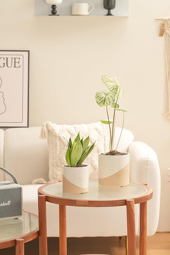 • 【Plant Recommendation】These small ceramic planters add a decorative touch and provide a stylish home for a variety of authentic or synthetic flora including succulents, cacti, snake plants, aglaonema, and peace lilies.