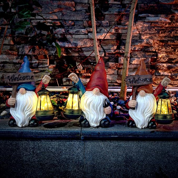 • 【Enjoyable Presents】This yard gnome garden décor figurines is one of the best gifts. Our garden statue and solar light can be applied to light up the backyard, lawn, pond, swimming pool or garden, and can be given to your family and friends on Mother's Day, Christmas, birthday and housewarming.