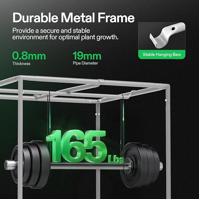 • Sturdy Frame & Strong Zipper: The thickened 19mm poles and durable metal frame enhance the overall load-bearing capacity, up to 165 lbs.; The strong zippers and tightly reinforced seals prevent light seepage and maximize the reflectivity of usable light