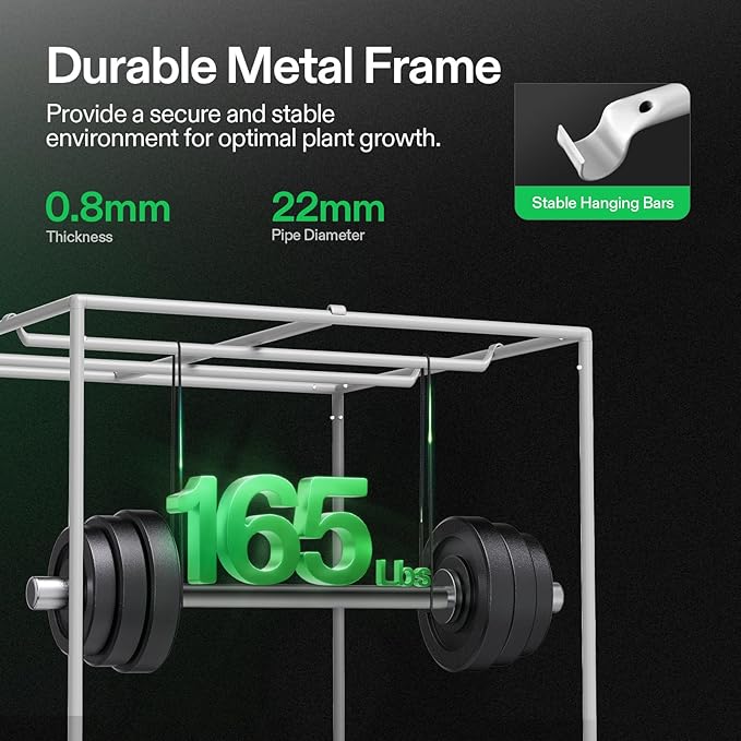 • Sturdy Frame & Strong Zipper: The thickened 22mm poles and durable metal frame enhance the overall load-bearing capacity, up to 165 lbs.; The strong zippers and tightly reinforced seals prevent light seepage and maximize the reflectivity of usable light