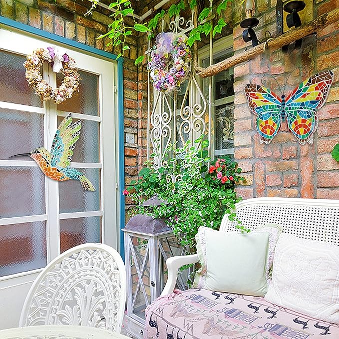 • 🦋 Widely Use: Mosaic butterfly and hummingbird wall art is suitable for both indoor and outdoor, perfect for garden, fence, yard, window, backyard, front door, porch, living room, bedroom, home, kitchen, etc.