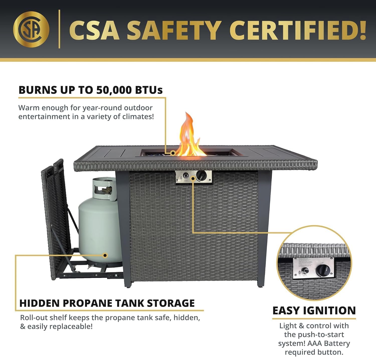 • 【All-Weather Rattan Wicker Design】Crafted with high-quality, multi-gray all-weather rattan wicker, this fire pit table is built to withstand sun, snow, rain, and rust. Perfect for year-round outdoor use, it maintains its elegance in any climate