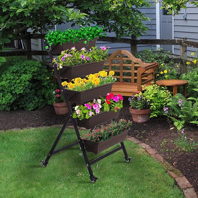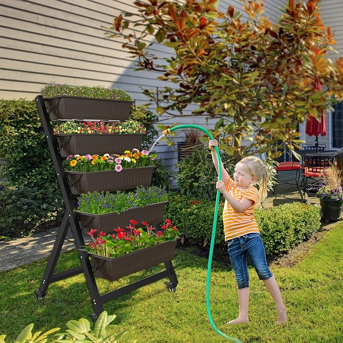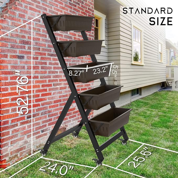 • 【Basic Structure】 The 5 tiers vertical garden bed’s each bottom has two drainage holes, which can prevent plants from rot or over-drying. 4 lockable wheels can help you move it indoor or outdoor as you want