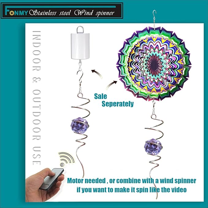 • 【PREMIUM CRYSTAL SUNCATCHER】The spiral with crystal is a special sun catcher rainbow maker, it’s Super Sparkly under sunshine. You can also add a motor(not include) to let the spiral to spin ,while spiral tail rotating (it can’t spin by itself.), the crystal ball seems to move up and down like floating and dancing in air while spiral tail rotating, presents the magical visual illusion.