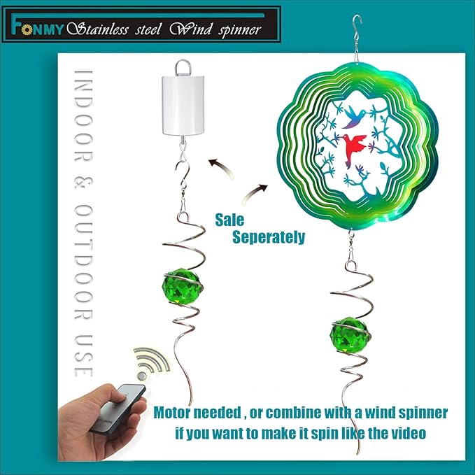 • 【WIDELY USE】: A sparkly ornament for indoor or outdoor use or windows.Unique Handmade; Beautiful and sparkling,Decoration for Home Office Garden Window. Help to stabilize 3D wind spinners décor from wiggling on real windy environment. Can hang up indoor, outdoor, anywhere you desire or along with 3D wind spinners, or attach to a rotating motor(motor not included ) to twirl indoor.