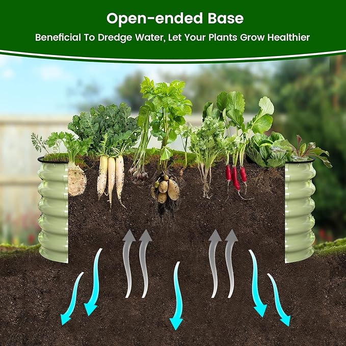 • Weather Resistant, Rust Resistant - Made of corrugated steel and coated with a Zinc Aluminum shield to prevent rust and keep your garden bed new for years. Galvanised steel material protects plants by reflecting high heat and retains soil and moisture at constant cold temperature. The garden bed material is environmentally friendly and 100% recyclable