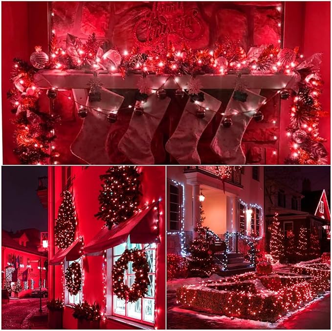 • Perfect for Christmas Decorations: Fairy Lights with red light accent your space with a unique, inviting glow. Purchasing 4 pack solar fairy lights at once is more affordable! 400 LED 132ft length suitable for a variety of large holiday scenes such as gardens, parties, patios, or can be used individually to decorate a variety of smaller scenes such as flowers, fences, trees, balconies.Don't hesitate especially if you love red like me. Red solar lights are a nice addition to Christmas decor.