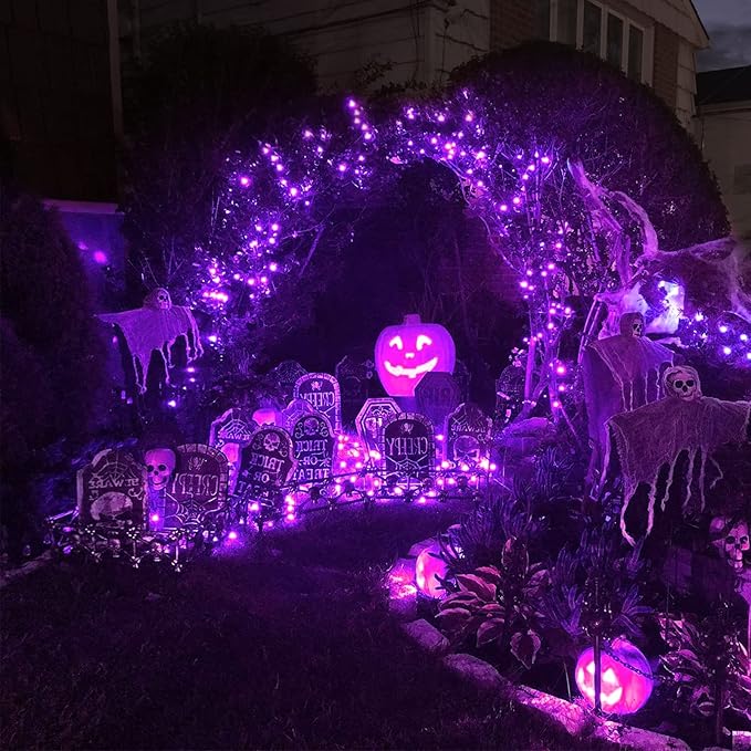 • 【Any Weather Suitable & Safety】When you are celebrating holiday outdoors, it would be terrible if the lights were extinguished by a sudden rainstorm. Fortunately, our purple Halloween lights outdoor are IP65 waterproof, so don't be anxious about rain interrupting your recreation. Besides, insulated copper wires keeps the lights cool for safety.