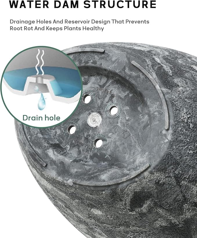 • 【Drainage Holes and Reservoirs】 Plastic flower pots have 4 drainage holes to allow excess water to flow out easily and avoid overwatering. The bottom cistern of these pots is designed to store excess water to provide constant moisture to the plant, helping to prolong the life of the plant.