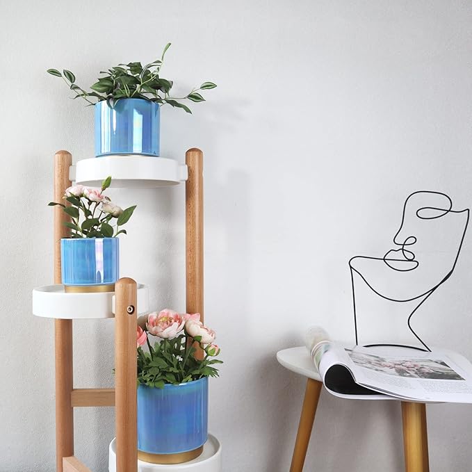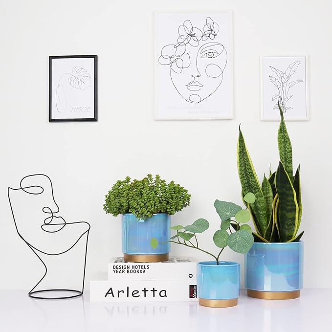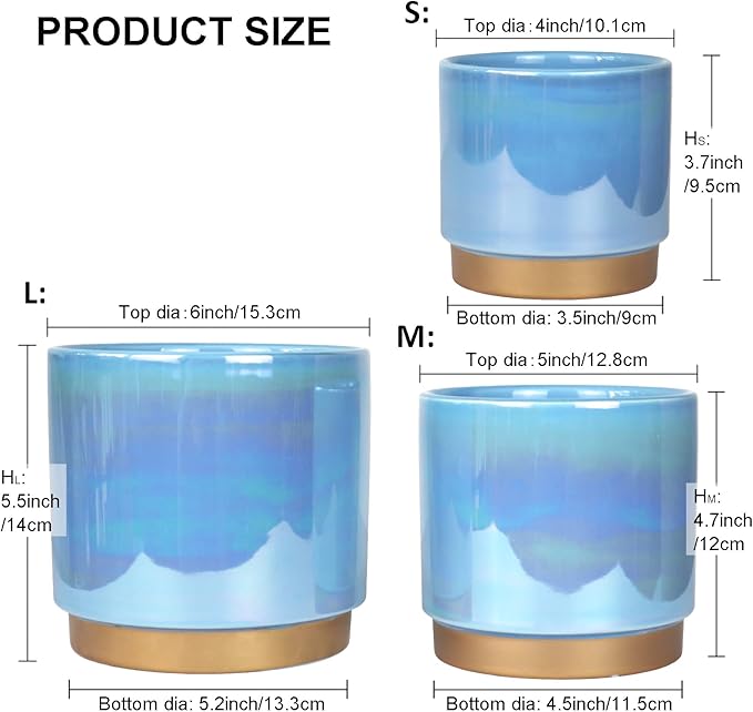 Gepege Ceramic Pots for Plants, Rainbow Pearl Glaze Planter with Drainage Hole, 6.0 inch+5.0 Inch+4.0 Inch. Indoor-Outdoor Large Round Succulent Orchid Flower Pot