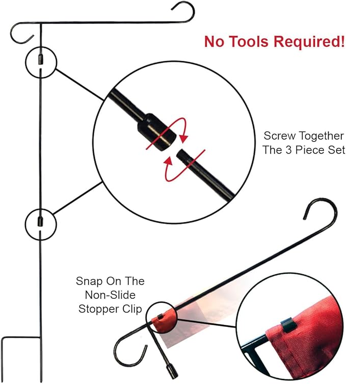 • No Tools Needed Set has 13 in x 18 in Garden Flag and 17.5" (w) x 36.5" (h) Assembled Sized Garden Flag Stand