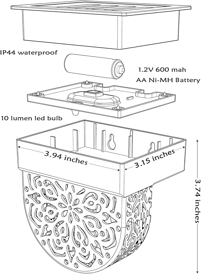 • Solar-powered LED lights provide beautiful warm yellow ambient lighting for 6-8 hours after full sunlight charge