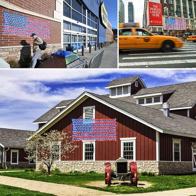 • 🚩【Made To Long Lasting & Safety】420 LED flag string lights with lifes pan 100000 hours.The color will NOT FADE as time goes. This Flag net lights can be portable,suspended, laid, flexible to use.