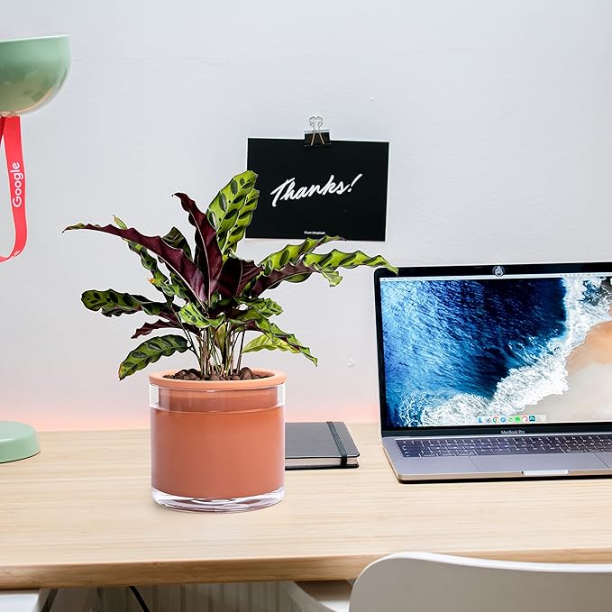 • Self-watering System: The terracotta pot is unglazed, just fill the glass container with water to ensure plants will absorb only what they need through the terracotta pot walls.