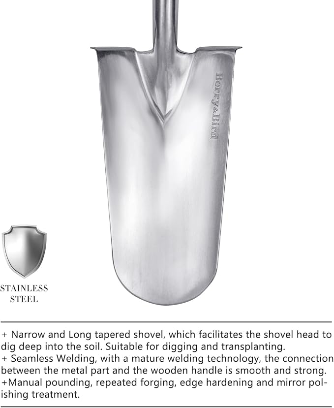 • 🌱What You Get: 1* Berry&Bird heavy duty trench shovel, 30-day free replacement, our worry-free 10-year warranty and friendly customer service.