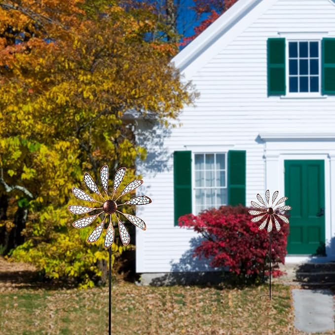 • 【Easy to Install】The Solar Wind Spinner is easy to install, no extra wiring, install them together and place them in the garden or yard with metal stake, just enjoy your garden decorations.