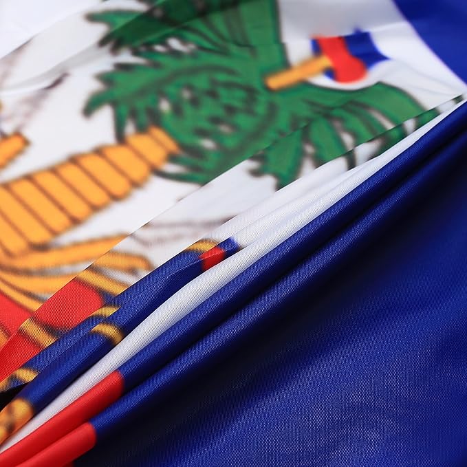 • 【DURABLE MATERIAL】The fan Haiti flag is made of durable polyester fiber, which can withstand rain, strong wind or hot sunlight. The edge of the flag uses double stitching, 3 brass buttonholes make it tear-resistant to improve its durability.