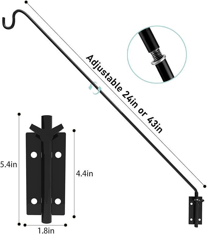 • Easy to Install:Use the screws to install on the wall or deck,trees,fence and more.Adjustable 180 degree allows you to adjust the length and angle of the hook easily by your hand.