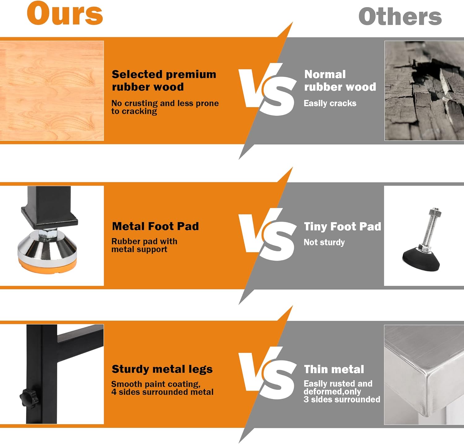 • 【HEAVY-DUTY RUBBER WOOD TABLETOP】48” x 23.6” wooden made,Betterhood adopts compression process to make it harder and more sturdy. Over 1500lbs capacity is enough to cope with a variety of uses in the reloading bench. Smooth and tough tabletop makes it easier whatever.
