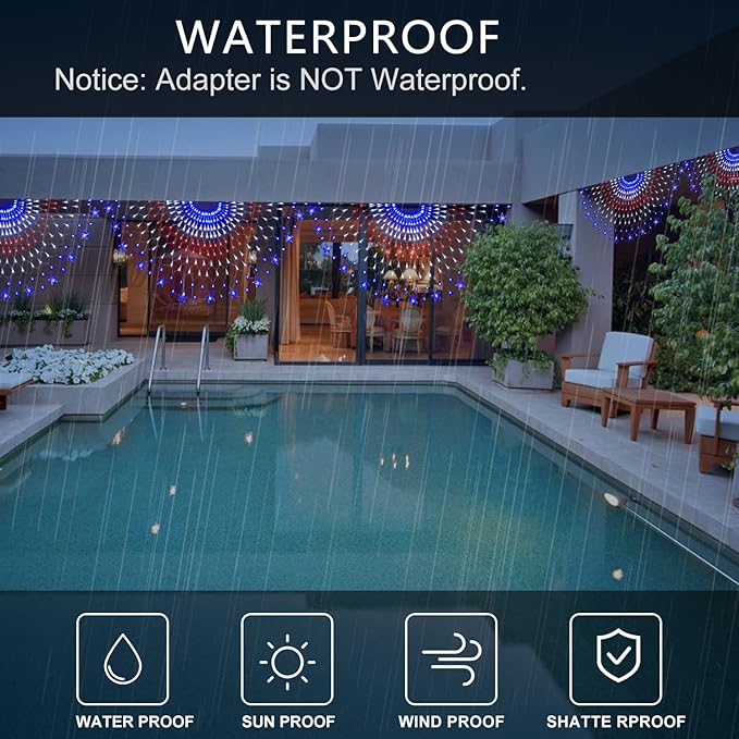 • WIDELY USED: American flag light can be used for indoor & outdoor decorations, it can be portable, suspended, laid, flexible to use, put on the tree, vine, porch roof, bedroom window, balcony, wall, etc, bring festival and pleasant atmosphere to your home or party.