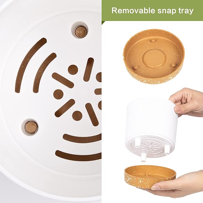• EASY DRAIN HOLES & TRAY: Flower Pots drain excess water from drainage holes to the bottom tray for storage and easy cleaning, preventing water overflow and flooding. Recommended to shop a layer of filler in the bottom of the pot