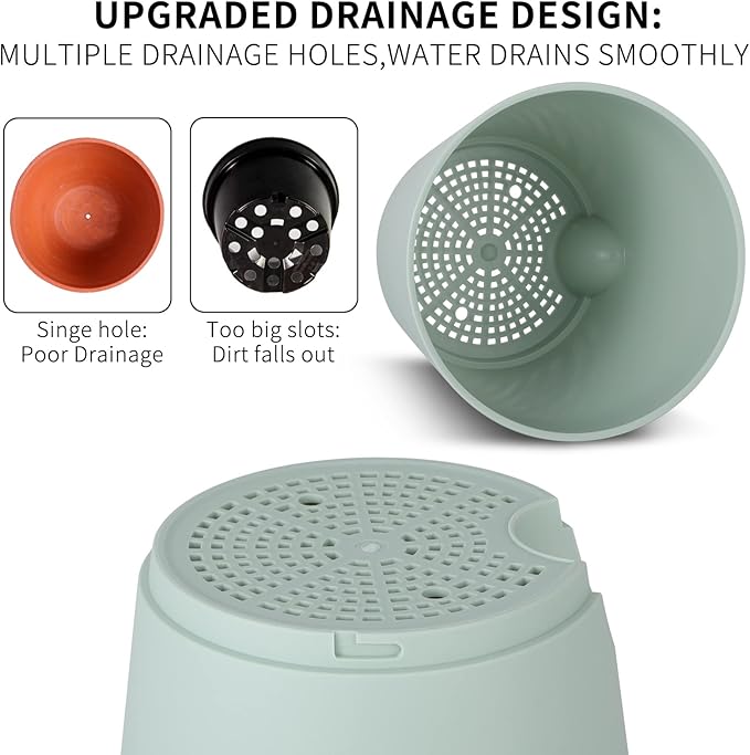 GARDIFE Plant Pots 7/6.5/6/5.5/5 Inch Self Watering Planters with Drainage Hole, Plastic Flower Pots, Nursery Planting Pot for All House Plants, African Violet, Flowers, and Cactus,Green