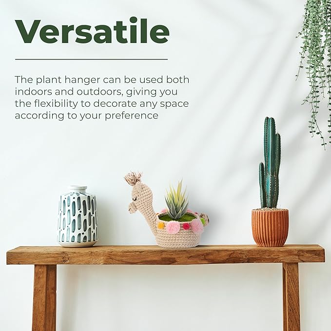 • Versatile & Sturdy Desk and Wall Planters - These llama-designed holders are crafted from densely crocheted 80% cotton and 20% acrylic yarn. Our plant hangers indoor and outdoor decorations ensure long-lasting beauty in any room or office.