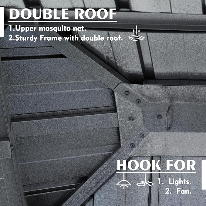 • ✅Two hooks have been specially crafted to accommodate fans or lights, enhancing the ambiance of your gazebo and making it a comfortable and inviting space.