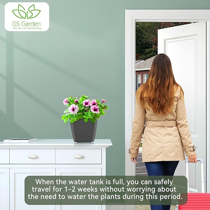 • GS Garden self-watering planters is an ideal plant pot for for All Outdoor/Indoor plants. The special water inlet design can avoid soil collapse and lead to excessive hardening of the flower soil. The root system can fully grow in the soft soil.Ideal for residential and commercial grades