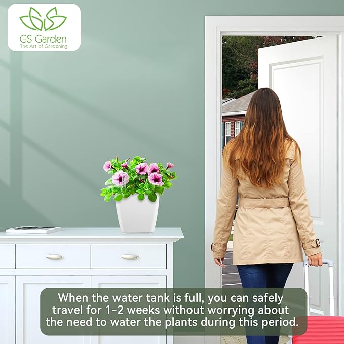 • GS Garden self watering planters are made of high-quality polypropylene, almost unbreakable. You don't have to worry about it breaking and leaking in your home. Our pot colors are long-lasting, vibrant colors that are more resistant the direct sunlight, available in a wide variety of colors (more colors will be available soon).