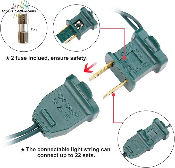 • 【Connectable】: The LED christmas light strings can be realize end-to-end connection up to 22 sets(2200 Counts) to meet your different decoration needs, these is the great idea for your bedroom, stair railing, garden, lawn, porch, patio, gate, tree etc