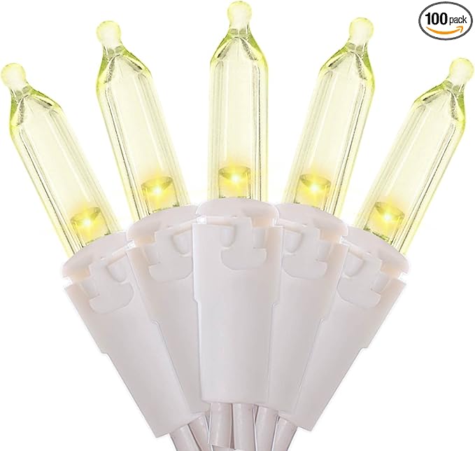 • 【Mini LED Christmas Lights Specification】: This white wire christmas string lights includes 100 count warm white led lights, total length 35.3ft, lights length 33ft and each led is 4 inches apart, 24 inches lead wire, 4 inches end connector (Extra 2 x replacement bulbs and 2 x fuse included)