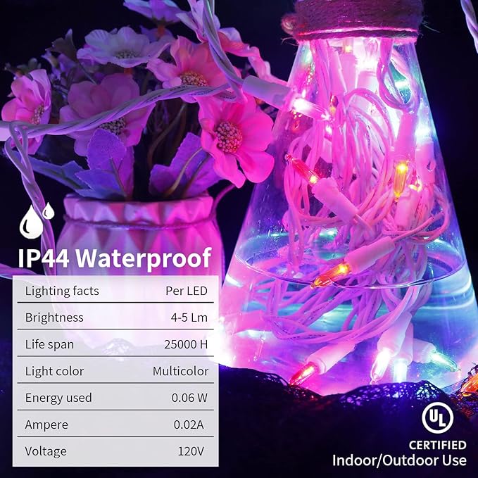 • 【Premium and Safe】: UL certified christmas lights to secure the safety of you and your family, mini LED string lights energy conservation and environmental protection, light beautiful and soft, stable without glare, IP44 waterproof grade, can be used indoors and outdoors decorations