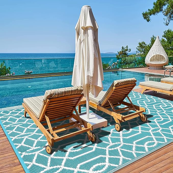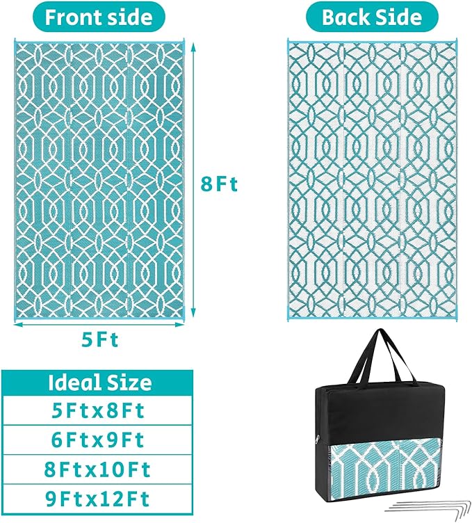 • Versatile Outdoor Carpet: The indoor outdoor plastic rugs have multiple choice in different colors(4'x6',5'x8',6'x9',8'x10',9'x12',9'x18',8'round), is ideal for a variety of indoor outdoor activities,like patio mat, deck rug, garden rug, beach mat, picnic mat, BBQ party mat, rv camping rug,pool rug,outdoor doormat,garage rug,front door mat,allowing you to have plenty of imaginable space for more fun.