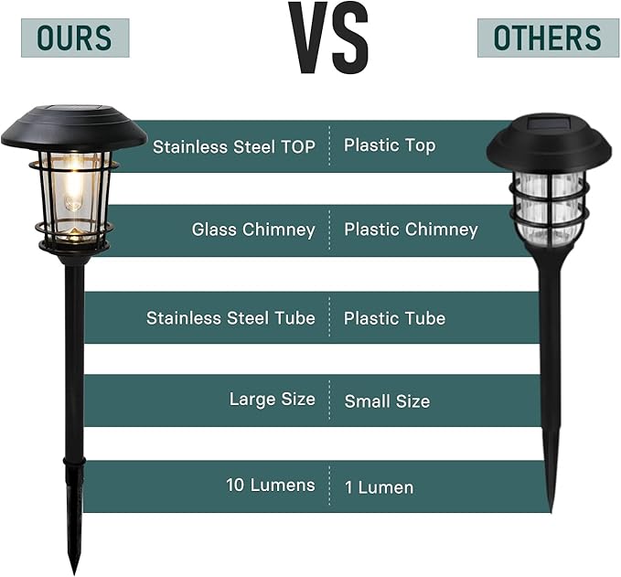• SOLAR POWERED: The Edison-style and solar powered light bulbs are bright and cast a soft, cozy glow to your path. With warm light design our solar path lights can decorate your garden, patio, lawn, yard or driveway