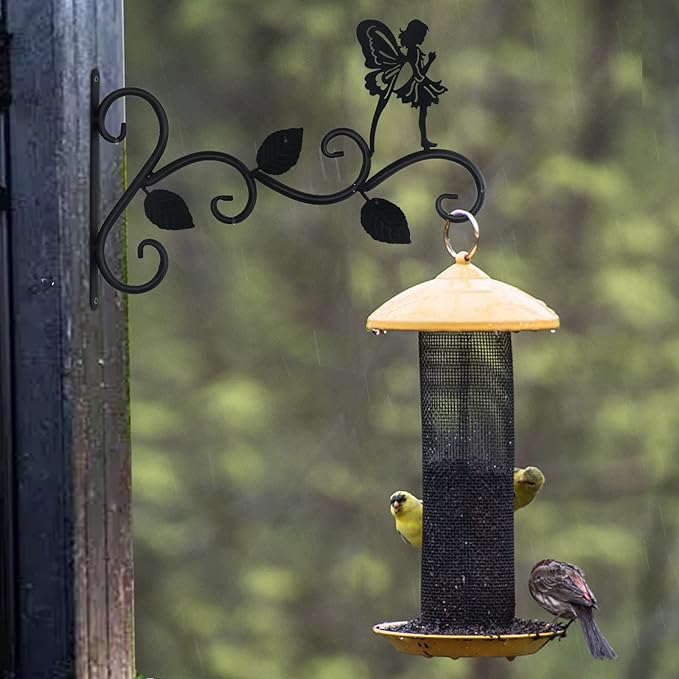• UNIQUE APPEARANC: Hand forged wrought iron metal hangers brackets with 3D angel design offer a charming, attractive natural look. A dark finish stunningly complements anything that hangs from it, adding elegance and beauty to your home or garden. Curved hooks hold your hanging items securely in the strong wind. Decorate your indoor and outdoor living space