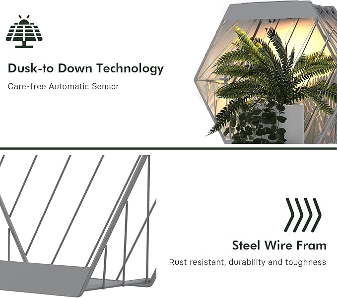 • MODERN LOOK: Featuring a contemporary, multifunctional design, the Leiden planter wall lantern is a great way to light up your garden or patio area, and provide a stylish place to display your plants. Highlighted by a trendy geometric hexagon steel wire frame in a powder coated cement finish, this fixture adds a warm glow to a variety of outdoor area