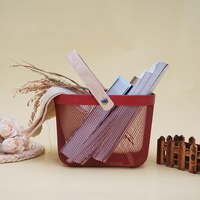 • The metal mesh storage organizer basket bin with wooden handle is a great way to organize or decorate your home, office, apartment, lofts, or other living spaces. This wire basket also can be a fruit basket or garden basket and storing those fruits and vegetables outside the refrigerator. Also as extra storage to meet your needs for household use.