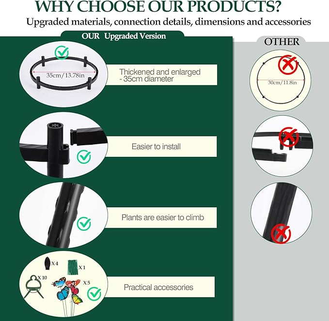 • Vegetables and Climbing Plants Trellis for Garden: The most important advantage - Exclusive double-layer steel pipe built-in interface upgrade design, which makes the garden trellis more sturdy and can carry heavy loads, it is an ideal tomato trellis.