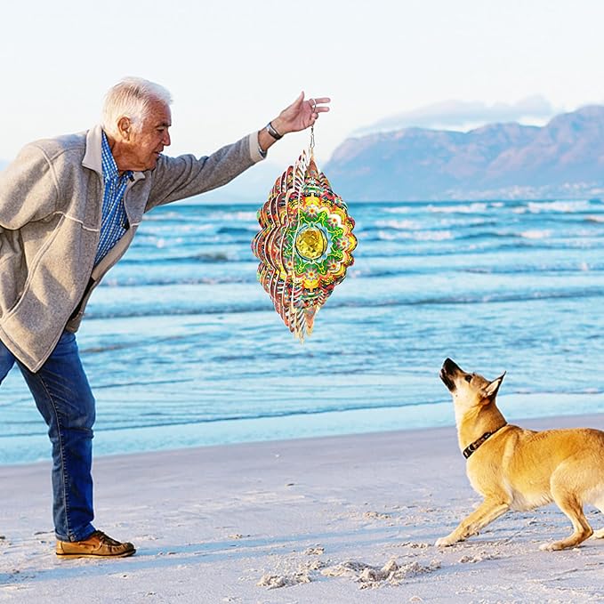 • Vivid reflective color】wind spinners are individually hand painted by epoxy protective coating with colorful sparkle powder inside to highly resist weather and rust. -Meanwhile,the reflective colorful glitter material gives off a sparkling, captivating and magical 3D visual effect, its beautiful light reflecting and attractive view whatever in night or day, wherever room or garden.