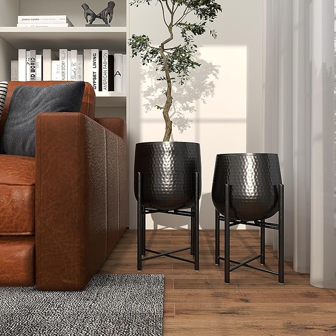 • 2 LARGE SIZE PLANTERS FOR INDOOR PLANTS: Each black metal planter measures 11.85L x 10.75W x 18.65H , 9.30L x 9.25W x 16.50H inches, and collectively weighs 8.34 lbs