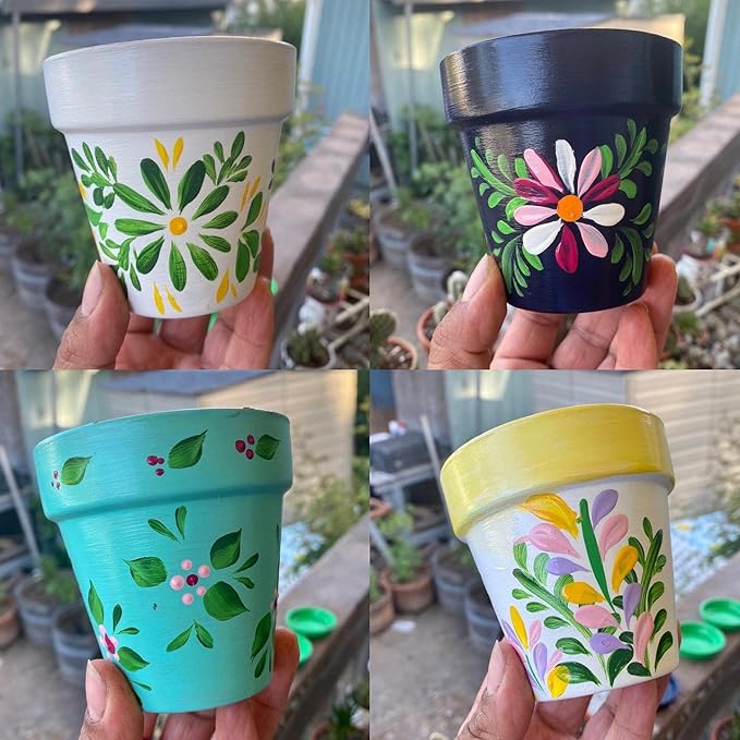 • Perfect for Little Hands - Terra cotta pot measures approximately 3.2 inches in diameter; 3.2 inches in height. These pots are perfect for preschoolers to paint . They were the perfect size for their hands and held the paint well.
