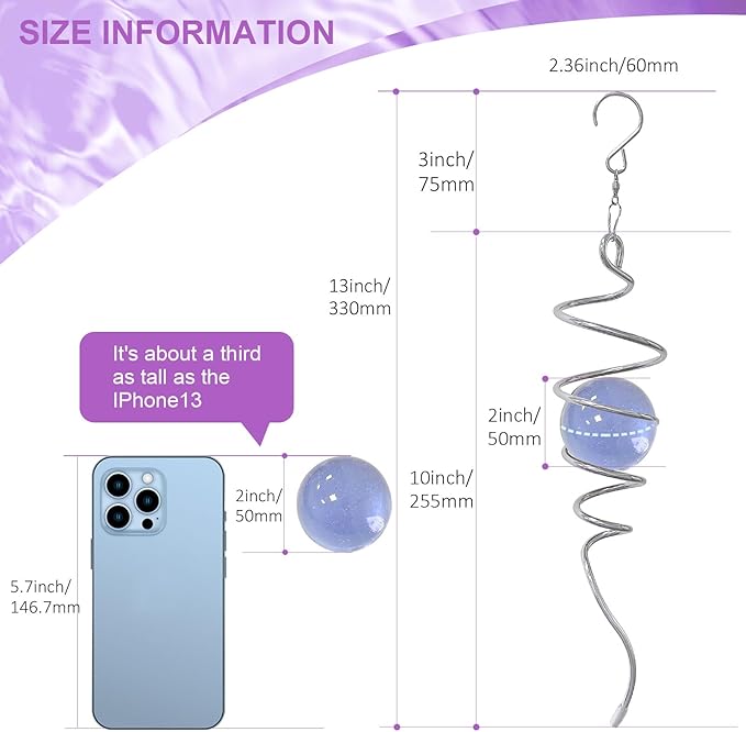 • 【 Enjoy Magic Visual Illusion 】​This beautifully clever yet simple gazing ball spiral tail is designed to create a stunning optical illusion. The glass ball appears to float and dance in the air as the magic glass ball spiral tail spins, creating a magical visual illusion that has a calming and relaxing effect on the mind. The Spiral Tail Wind Spinners can reduce anxiety and improve mental focus, making it perfect for creating a relaxing atmosphere in your home, garden or yard.