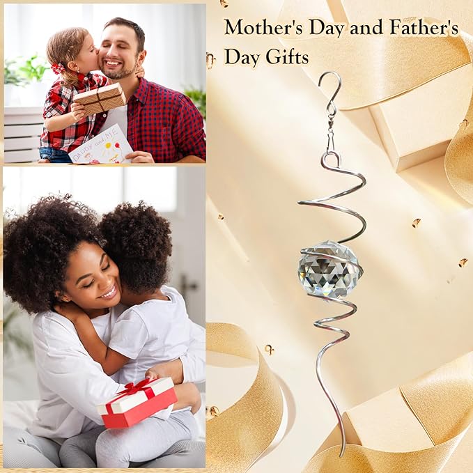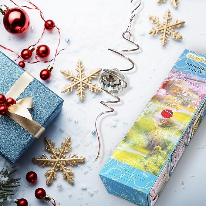 • 【 Meaningful Unique Gifts 】Clear Crystal symbolizes peace, harmony, purity.The Gazing Ball Spiral Tail Wind Spinner came in a beautiful gift box that was easily giftable. This magic ball spiral tail is a wonderful gift that will be a hit as a birthday gift, Thanksgiving gift, Christmas gift, housewarming gift, garden gift, Decor gift, etc.. The wind spiral with crystal ball is a perfect gift for birthdays, Thanksgiving Day, Christmas, etc. and any you loved people ( family, friend, etc.).