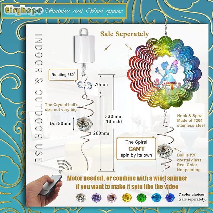 • 【 3D Wind Spinners Stabilizer 】The wind spinner spiral with a 360° swivel hook is easy to hang. Our wind spinner crystal tails are gorgeous additions to our range of 3D wind spinner accessories. Attached to the bottom of kinetic wind spinner, which adds another dimension to the overall look, also helps provide stability on windy days. Since the Wind Spinner Stabilizer Spiral Tail can't spin on its own, add a wind spinner motor (not included) to help it spin.