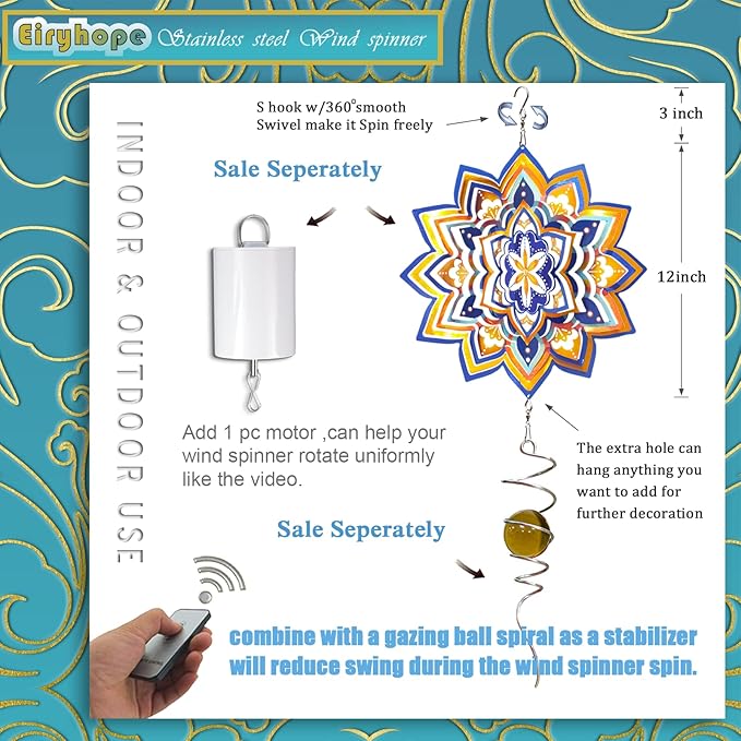 • 【 Easy to Use 3D Wind Spinner 】The outdoor wind spinner is easy to shape and spin. Its 3D design makes it easy to transform into a 3D wind sculpture. The ingenious metal construction of this mandala 3D wind spinner catches more breezes to spin. The 12" wind spinner is an eye-catching focal point.