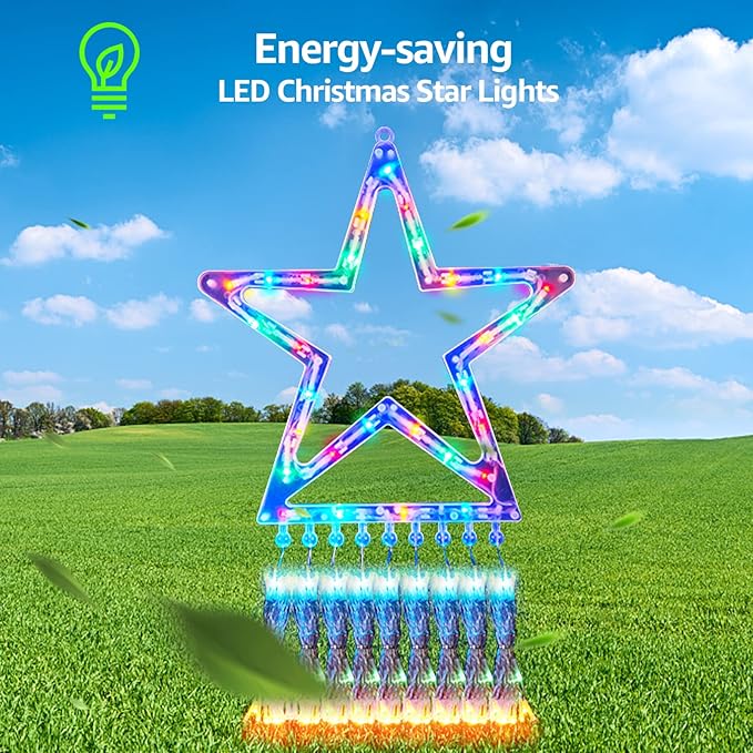 • Safety and Energy Efficiency: To ensure absolute safety, the star Christmas lights have been thoroughly tested and fully complied with the UL certification standard. Furthermore, the product uses a new type of energy-saving LED lamp beads, characterized by high brightness and low energy consumption, allowing 80% energy savings.