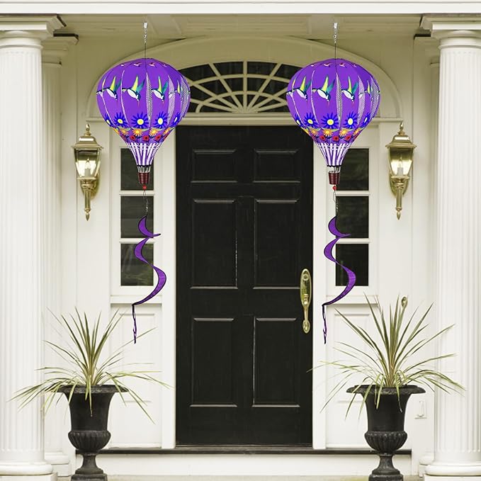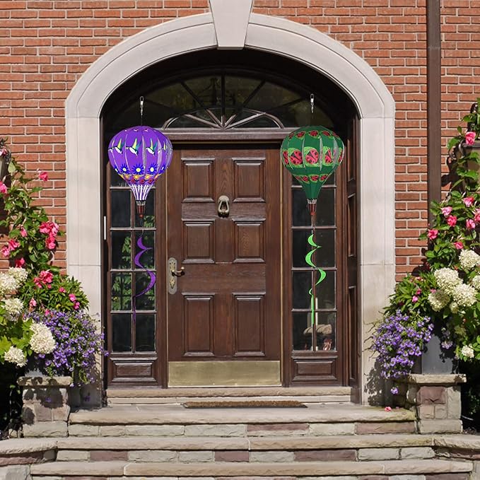 • 2PCS Hot Air Balloon Wind Spinners:Hot air balloon wind spinners with a curly tail, which is colorful and has great visual appeal. Use colorful wind spinner to decorate your courtyard, add eye-catching color and vitality to the courtyard.