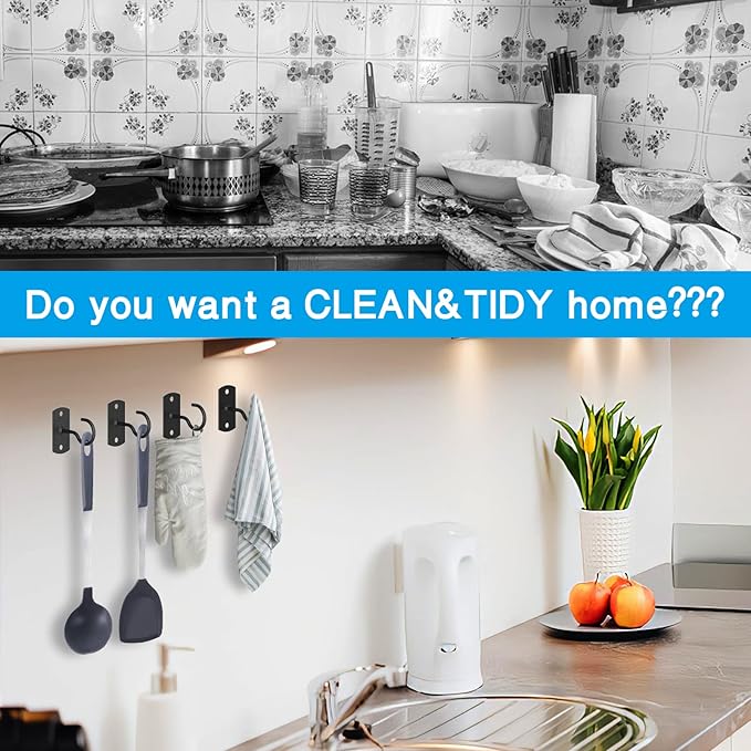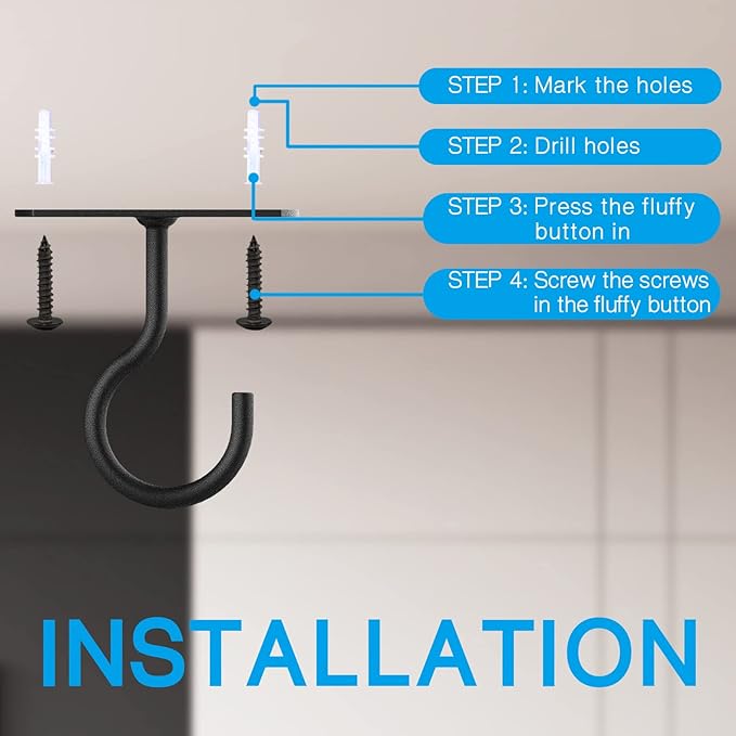 • PACKAGE INCLUDE:Pack of 4 4“ Black Ceiling Hooks with 8 mounting screws Approx 40mm 1.57inch.