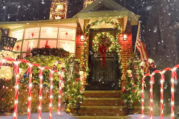 • 28 IN Christmas Pathway Lights Outdoor: Upgrade 12 Pack Christmas candy cane pathway makers, Size 28 inches(include stakes) . 2 set of 6 Christmas candy cane design, Decorating and light your pathway or driveway. Create surprise and romance for your Christmas night. Christmas Lights That Make Your Neighbors Envy